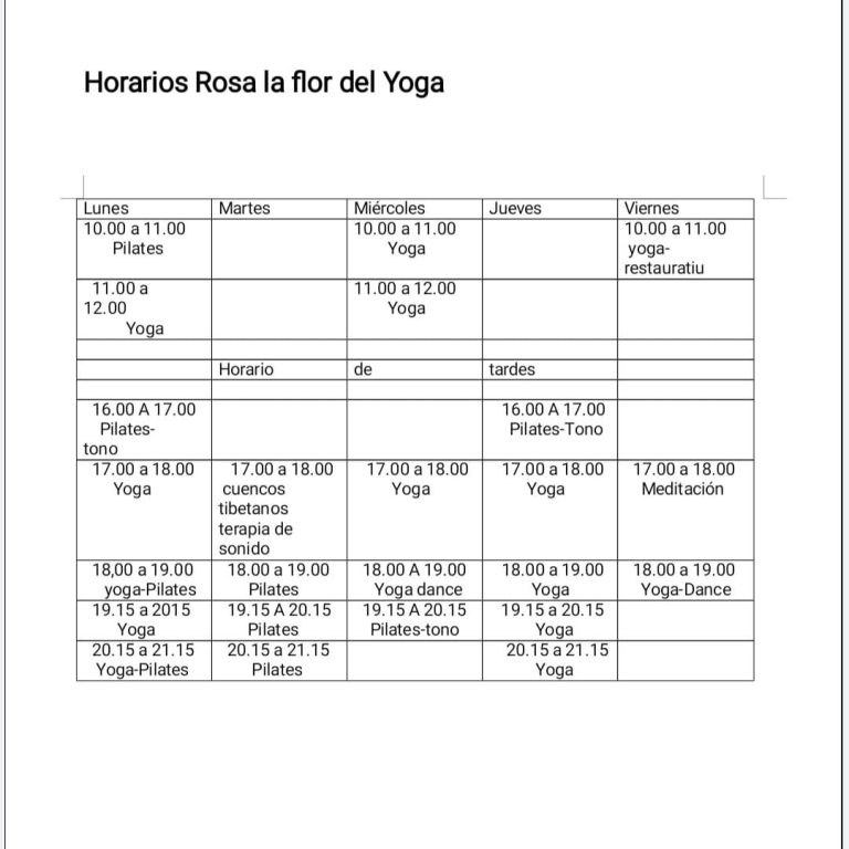 Diferentes horarios tanto de mañana como de tarde con las variantes del Yoga Hatha y pilates